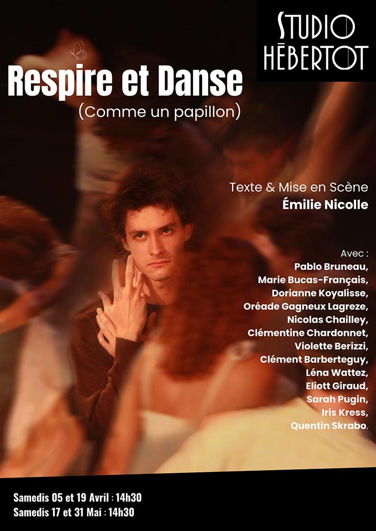 Respire et Danse (Comme un papillon) est une pièce qui raconte le parcours d’un jeune homme, Robin, atteint de trouble de la personnalité. On partage avec lui ses tourments, ses passions et ses éclats de vie. On danse et on rit, on se console et on se souvient.