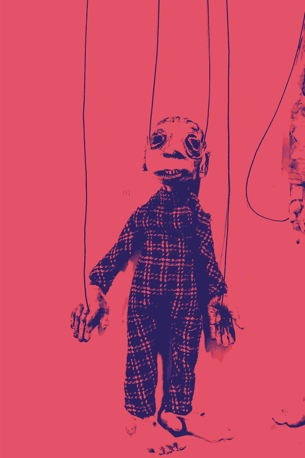 Sur scène, un défilé de marionnettes à fils avec des corps inhabituels. La manipulatrice, cheffe d’orchestre de ce petit monde, est vite dépassée par l’énergie en présence. Pour l’accompagner, la percussionniste rythme et amplifie le jeu des marionnettes.