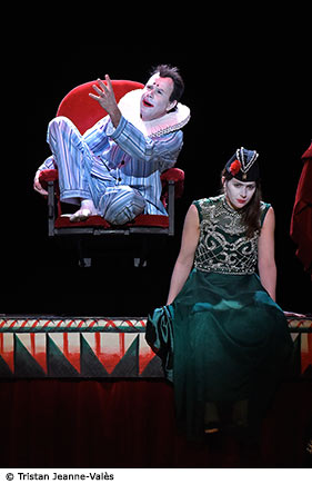Et puis il y a cette machine à jouer, ce castelet, merveille d’inventivité d’où jaillissent des fantoches, s’ouvrent des trappes et apparaissent des amusements de fête foraine. Le décor, ce troisième personnage, est un partenaire indispensable au couple d’acteurs – et au public. Il permet non seulement d’offrir au jeu son plus beau terrain, mais il offre aussi à la communauté des spectateurs le miroir magique de sa propre existence.