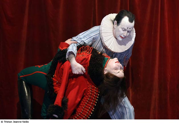 Un clown face à un clown. Un acteur face à une actrice. Lui se prend pour Richard III. Elle, pour tous les autres. L’un et l’autre sont pris dans la machinerie d’un théâtre magnifique et fou qui est à l’image de l’ivresse du pouvoir. Lui accomplit son ascension irrésistible vers le sommet de l’État alors que son clown plonge dans les abîmes du tragique. Elle a plus d’un tour dans son sac, elle se métamorphose, elle change de costume en un clin d’oeil, elle incarne une myriade de personnages, elle brandit des fantômes protéiformes aux textures tant matérielles qu’immatérielles. Ensemble, ils ont pour objectif de construire leur propre Richard III.