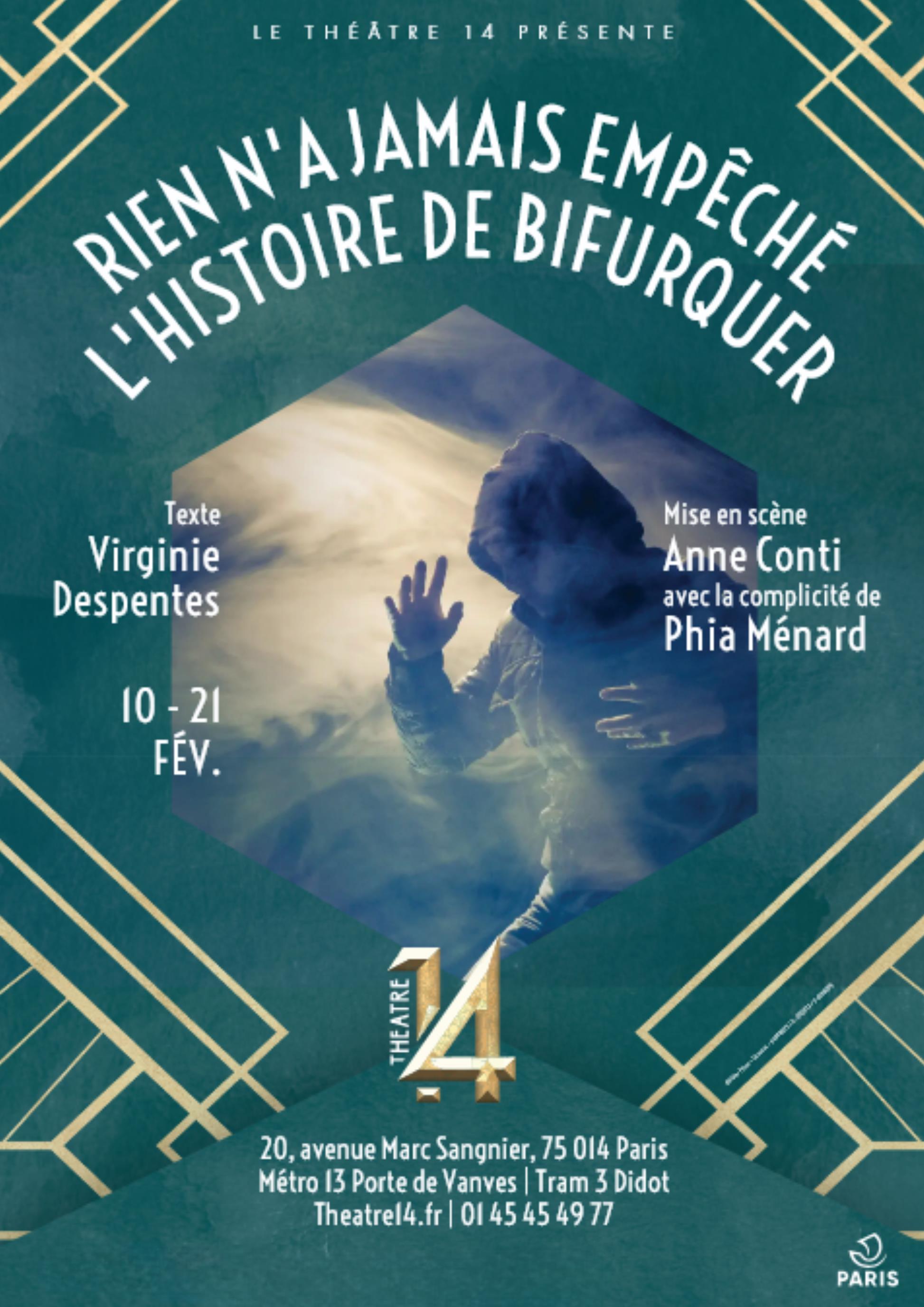 Tout commence lors d’un séminaire organisé au Centre Pompidou, le 16 octobre 2020, par le philosophe Paul B. Preciado intitulé Corps révolutionnaires. Pour cet événement, Virginie Despentes écrit et lit ce texte. Elle appelle ici à ce que l’histoire bifurque. De façon urgente. Elle appelle à la transformation du monde, à ce que la révolution des corps et des esprits s’opère en se libérant des carcans de dominations et des violences du capitalisme, du colonialisme, du patriarcat, du racisme et de l’homophobie. Un appel urgent au déploiement de la douceur, de la bienveillance et de l’écoute sincère. Elle y interroge la soumission, la frontière et la liberté. Elle y célèbre la force des liens invisibles. Texte puissant et magistral, encore inédit à ce jour. C’est dans une version poético-punk, musicale et visuelle, qu’Anne Conti et son équipe s’en emparent, avec la complicité de Phia Ménard. Portés par une scénographie qui nous plonge dans un univers en reconstruction, la mise en scène, la musique et le travail graphique convoquent l’imaginaire, offrant au texte le temps de se déposer en nous.