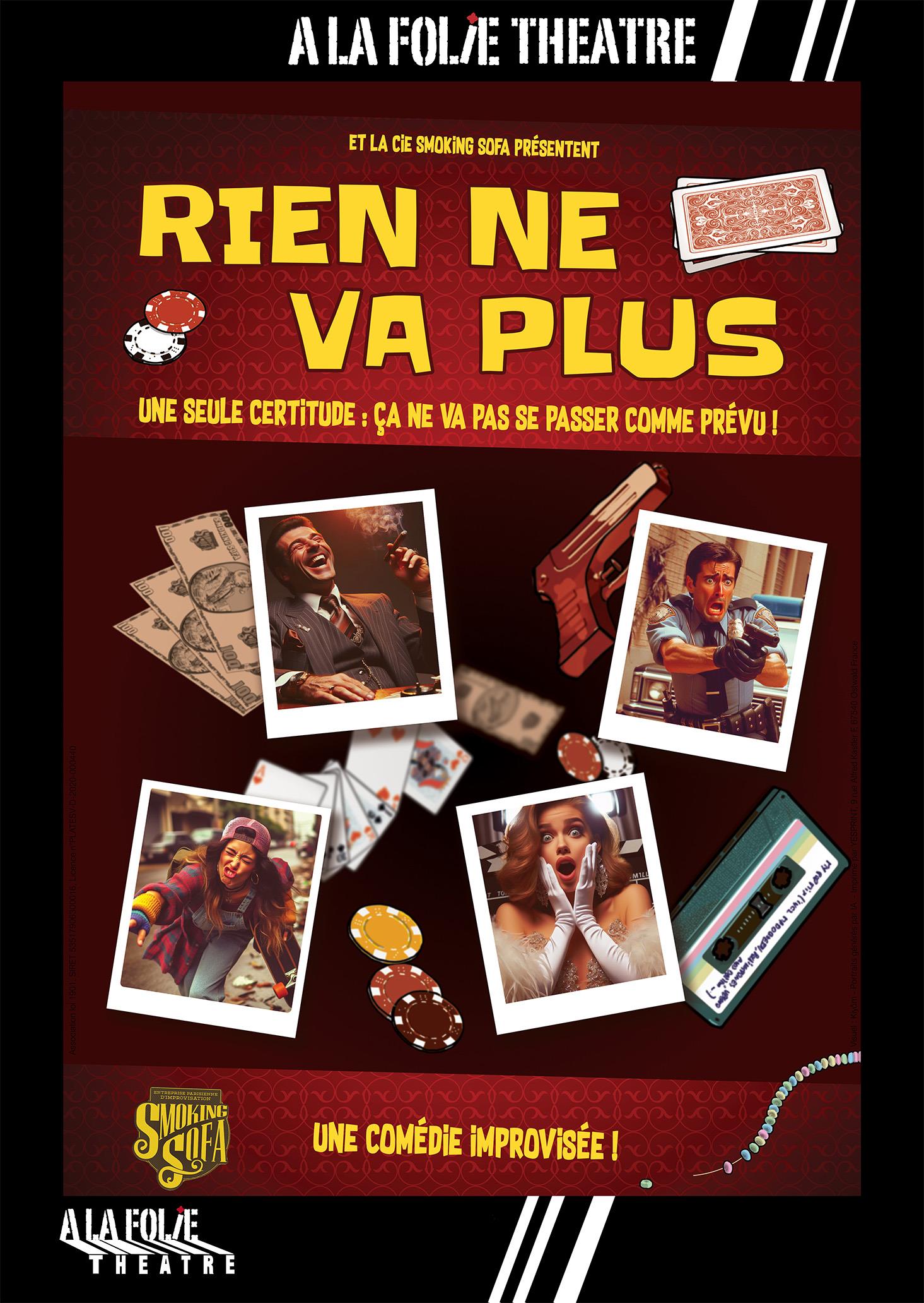 Plongez dans l’Amérique des années 80 où le rêve américain rime avec l'appât du gain. Quatre protagonistes inédits, des contraintes tirées au hasard : un spectacle unique chaque soir renouvelé !Une histoire déjantée et totalement improvisée dans un univers inspiré de Tarantino et des frères Coen.