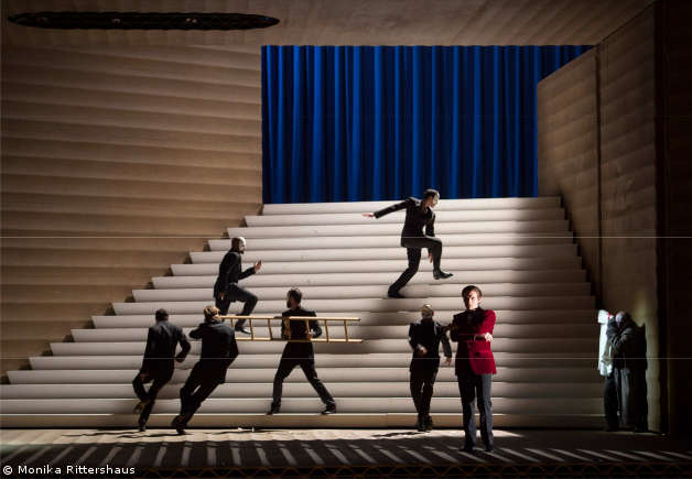 Le rôle-titre atteint son apogée dans l’air « Cortigiani, vil razza dannata », dont le mouvement descendant, de l’explosion de rage à l’imploration, affirme la capacité de Verdi à plier une forme héritée du bel canto à la vérité du théâtre. Claus Guth a signé avec ce spectacle sa première mise en scène pour l’Opéra de Paris.
