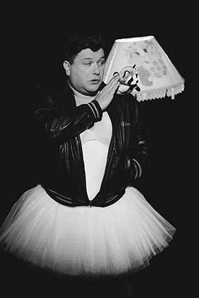 Avec quelques pas chassés, des cabrioles et des grands jetés, Rodolphe Sand perché sur des demi-pointes, enveloppé dans un tutu, se fait raconteur de sa réalité.