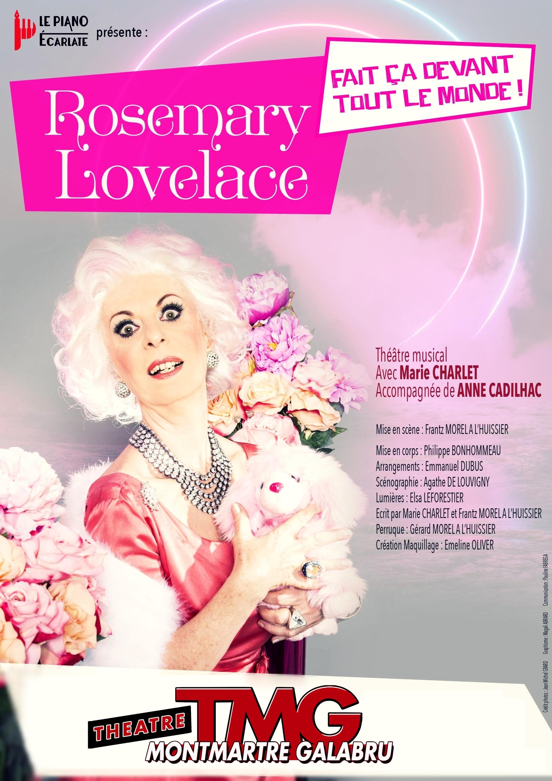 Le récit est ponctué d’airs coquins et fantaisistes majoritairement issus du répertoire des années 20-30 (Mistinguett, Charles Trenet, Colette Renard…) avec quelques clins d’œil à Boris Vian, Lio et Dalida. Et comme Rosemary Lovelace veut rester « in », elle proposera au public une fin très interactive.