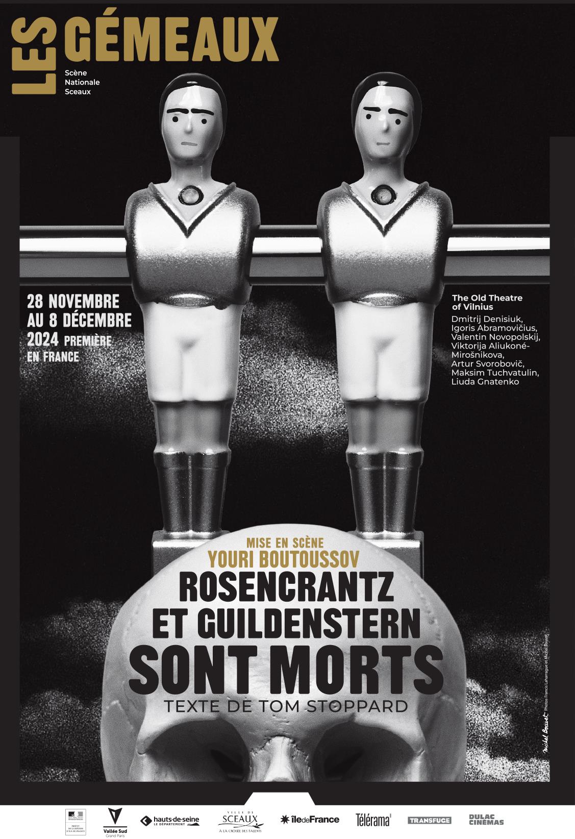 Rosencrantz et Guildenstern sont des personnages secondaires d’Hamlet. Sous la plume du dramaturge anglais Tom Stoppard et dans cette mise en scène de Youri Boutoussov, figure emblématique de la scène russe contemporaine, ils deviennent les (anti)héros d’un classique de l’absurde et crèvent le devant de la scène, magistralement interprétés par les comédiens du Vieux Théâtre de Vilnius (Lituanie). Luttant désespérément contre leur triste destinée théâtrale (une mort annoncée par le titre même de la pièce, en lieu et place d’Hamlet), Ros et Guil nous embarquent dans une farce tragique qui flirte avec l’ironie à l’anglaise et l’épopée fantastique. Cette pièce de Stoppard est construite sur le sentiment de pitié qu’inspirent des personnages qui ne comprennent pas ce qui leur arrive, desquels rien ne dépend. Metteur en scène d’une soixantaine de pièces qui ont marqué leur temps à Moscou et Saint-Pétersbourg et tourné dans le monde entier, Youri Boutoussov, exilé depuis le début de la guerre en Ukraine, a toujours exprimé à travers le théâtre de l’absurde les paradoxes de l’homme moderne. Et de rendre accessible et ludique un théâtre d’auteur, où le corps tient toujours le premier rôle. Qu’il revisite Brecht, Tchekhov, Gogol, Jon Fos, ou Tom Stoppard ici, il ne craint pas d’effacer les frontières entre théâtre, danse et mime, grotesque et politique, réalisme et onirisme. Cet immense metteur en scène n’avait jamais présenté son travail en France. Ce sera donc une Première !