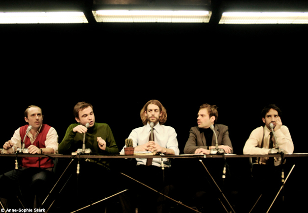 À travers cette bande de chroniqueurs, ce sont tous les mécanismes internes du groupe qu’interroge le Raoul Collectif, comme la codécision, l’unanimité, ou au contraire le désaccord et la discorde, mais aussi l’entraide et la propriété. Pour cette nouvelle création, le Raoul Collectif s’est inspiré, en les revisitant, de plusieurs groupes aux points de vue très différents sur le monde. Ceux-ci ouvrent la voie à l’imaginaire et aux histoires à la fois sérieuses, drôles et loufoques que nous servent ici les cinq comédiens, livrant, comme à leur habitude, un spectacle inventif et ingénieux. À travers des histoires à tiroirs qui s’entrecroisent et une narration non linéaire, ils laissent la porte ouverte à l’interprétation et à la construction personnelle du spectateur : « On aime bien laisser le spectateur travailler un peu, le perdre un moment et le rattraper juste quand il peut croire qu’il ne comprend plus rien », expliquent-ils.