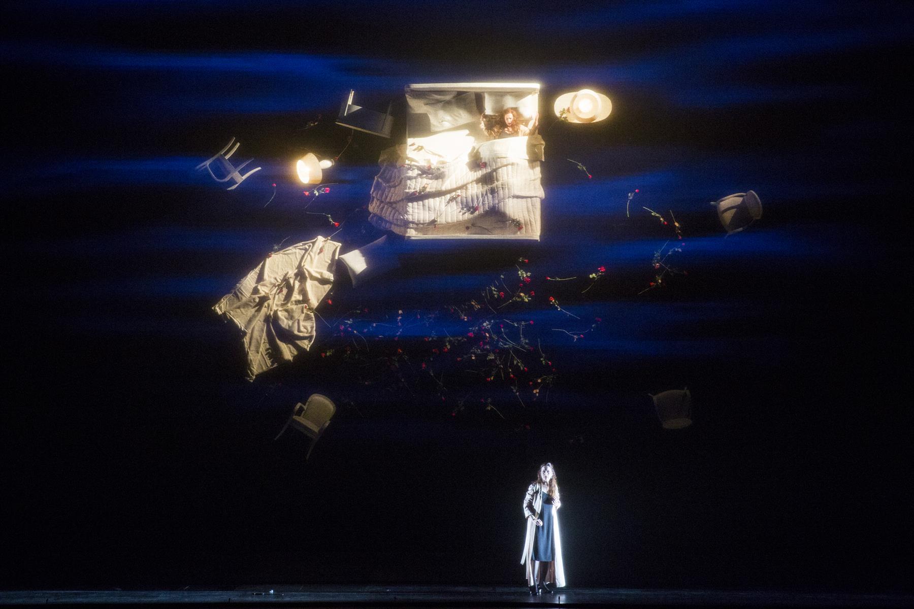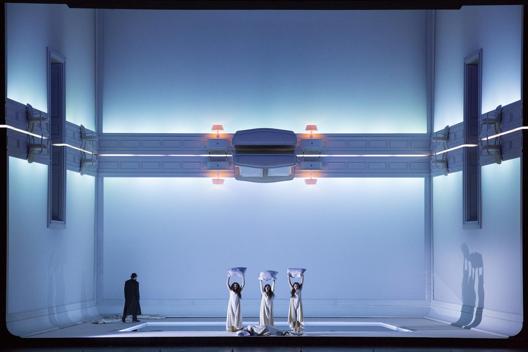 Se glissant dans cet univers organique et poétique, Robert Carsen conçoit une mise en scène d’une grande inventivité visuelle : par un jeu de symétries et de dédoublements, il évoque autant les reflets dans l’eau que le miroir du rêve, révélant l’impasse d’une transgression contre-nature.