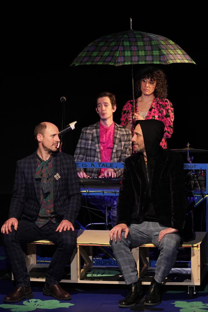 « Être ou ne pas être », « Mon royaume pour un cheval » sortent de la bouche de ses contemporains : sa femme, sa troupe, ses protecteurs, la Reine Elisabeth pour raconter « le divin barde ». « Le monde entier est un théâtre », écrit Shakespeare et c’est dans son théâtre que trois comédien-nes et un musicien s’élancent pour imaginer son monde, avec pour seul espoir le souffle de vos bienveillants murmures. Sinon, ils auront manqué leur but : vous plaire.