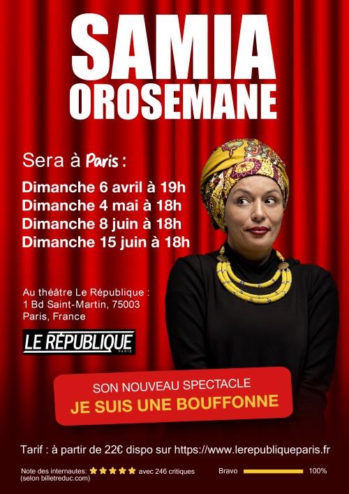 Après avoir tourné dans 18 pays différents, Samia Orosemane revient à Paris avec son nouveau spectacle : Je suis une bouffonne.