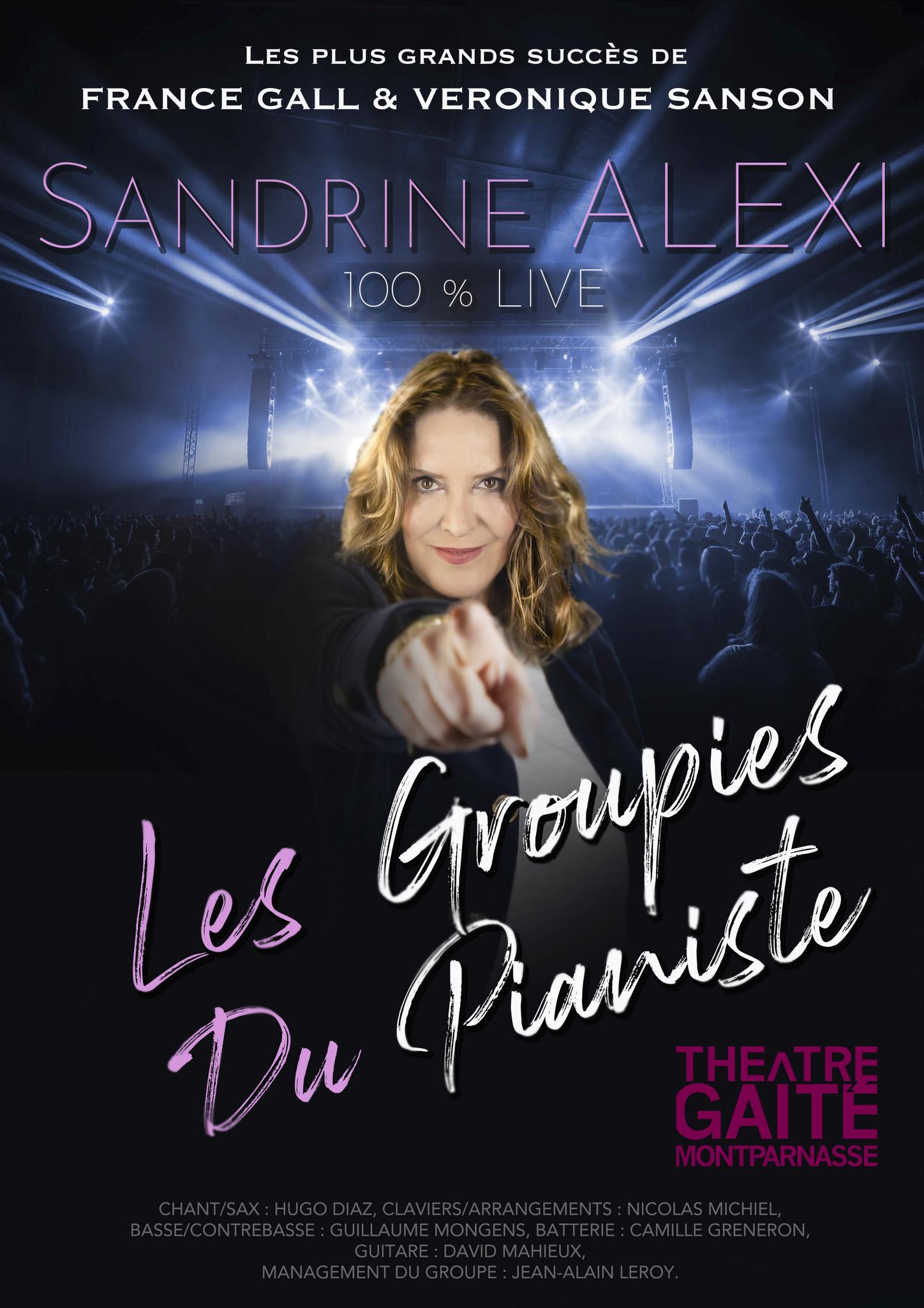À travers les voix de France Gall et Véronique Sanson, l’imitatrice Sandrine Alexi entourée de ses musiciens propose un tout nouveau tribute dédié à ces deux grandes artistes qu’elle affectionne depuis toujours « Les Groupies du pianiste ».