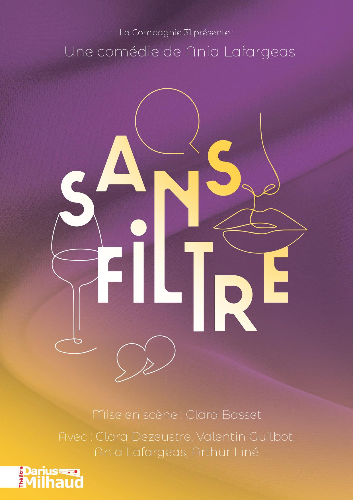 Sans filtre est une comédie moderne sur les filtres que l’on s’applique en société. La pièce répond à la question que l’on se pose tous secrètement : que se passerait-il si l’on se débarrassait de ces filtres ? La sincérité, oui, mais à quel prix ? La pièce aborde avec humour, subtilité et poésie la question de la complexité de nos relations sociales, dans un monde où on nous apprend qu’il est important d’être soi-même, mais que toute vérité n’est pas bonne à dire. Que dire et que cacher, mais surtout pourquoi ? Si la raison d’un mensonge est noble, peut-on le pardonner ?
