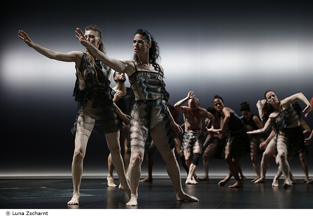 Dans l'environnement sonore créé par le trio Soundwalk Collective, avec les costumes de la styliste Iris van Herpen et les lumières d'Urs Schönebaum, la chorégraphe allemande renoue ici avec quelque chose d'originel.