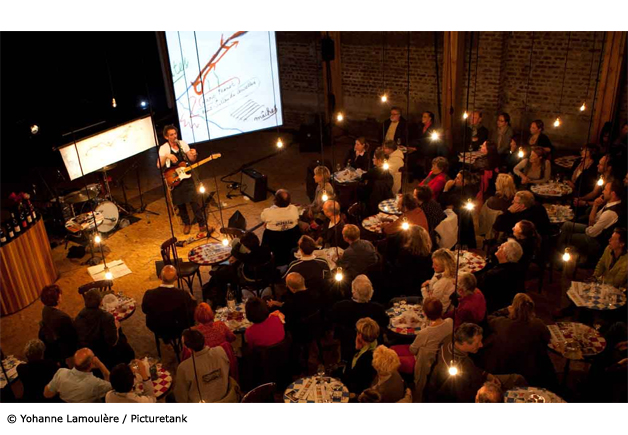 Ils visitent les spectateurs dans les photos de Yohanne Lamoulère projetées dans un dispositif mi-bistrot, mi-salle de spectacle, et nous invitent à déguster leurs crus, tandis que Sébastien Barrier dispense ses commentaires à ras bord. Dans les accords de sa Fender Telecaster, c’est aussi sa propre vie qu’il sert, ses observations, ses récoltes et ses maturations. Son addiction au vin autant qu’au verbe trouve écho dans le Journal d’un morphinomane, texte écrit par un médecin au XIXesiècle. Ses expériences de l’ivresse – histoires d’amour comprises – scandent ses souvenirs d’égotisme, un art de la digression bien concerté sous son apparence improvisée, l’expérience de ce qu’il nomme une « écriture orale », ce qui s’appelle un style.