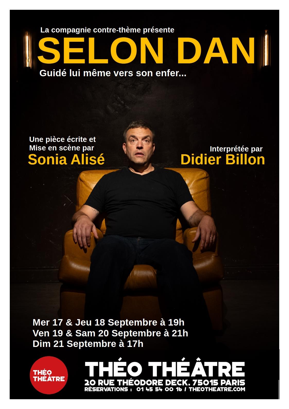 Selon Dan est un monologue dramatique qui aborde le thème de la colère ancrée et des violences domestiques sous l'angle de l'homme violent. En entrant dans sa psyché, nous suivons le brouillard qui l'amène à commettre l'irréparable, avec la volonté de ne pas tomber dans le voyeurisme.