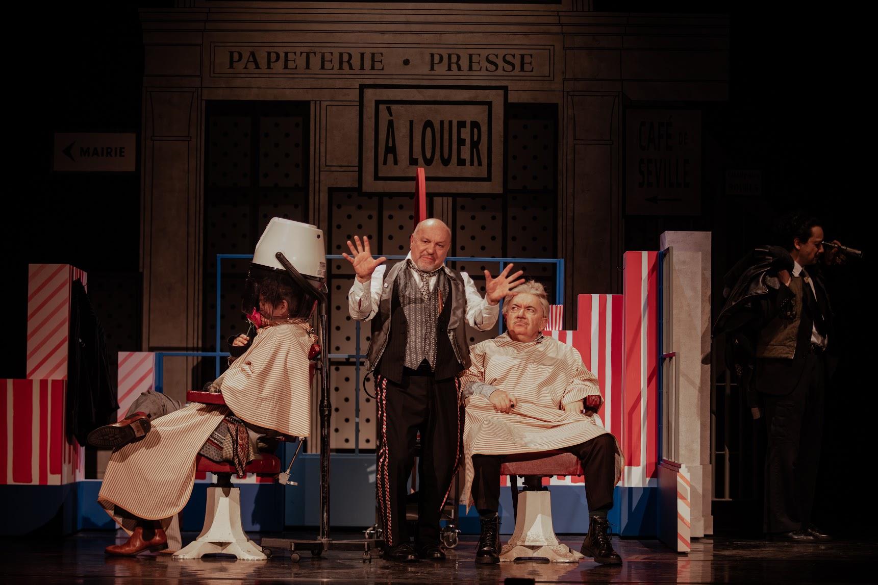 Décors pour épater la galerie...marchande, il va s'en dire ! pièce idéale pour la télévision... public hilare, le rire pour un oui, pour un non... pauvre FIFI... j'étais la femme, celle la même qui se barbe car oui je me suis barbier... du début à la fin. Les décors flatteurs, costumes (moyens pour moyen!), tout est fait pour vous "sédouire" dans la forme et si d'aventure vous touchez le fond... même pas mal ! Invitation au divertissement, un peu de légèreté dans ce monde de "BRUT" jusqu'au travestissement du plaisir... Du pain sur les planches, que nenni du "vain" sur la scène, tout est dans l'enrobage !... brisons là ! Bon les gens z'étaient en liesse et c'est tout ceux qui comptent qui seront contents, pas cocus mais contents... Figaro tirait son épingle du jeu dans une pièce tirée par les cheveux. J'ai, du coup, renoncé à "purger bébé" car, deux chef- d'oeuvre le même soir, eût été chose indécente.