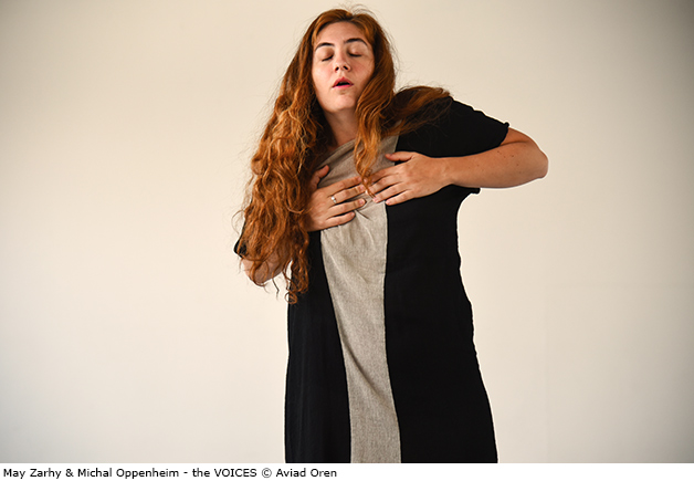 May Zarhy, danseuse et chorégraphe et Michal Oppenheim, chanteuse, performeuse, et compositrice, travaillent ensemble depuis 2015 autour de la façon dont l'acte d'écouter et l'exploration des cavités invisibles du corps peuvent amener musique et chorégraphie à se révéler l'une l'autre et construire un troisième espace.