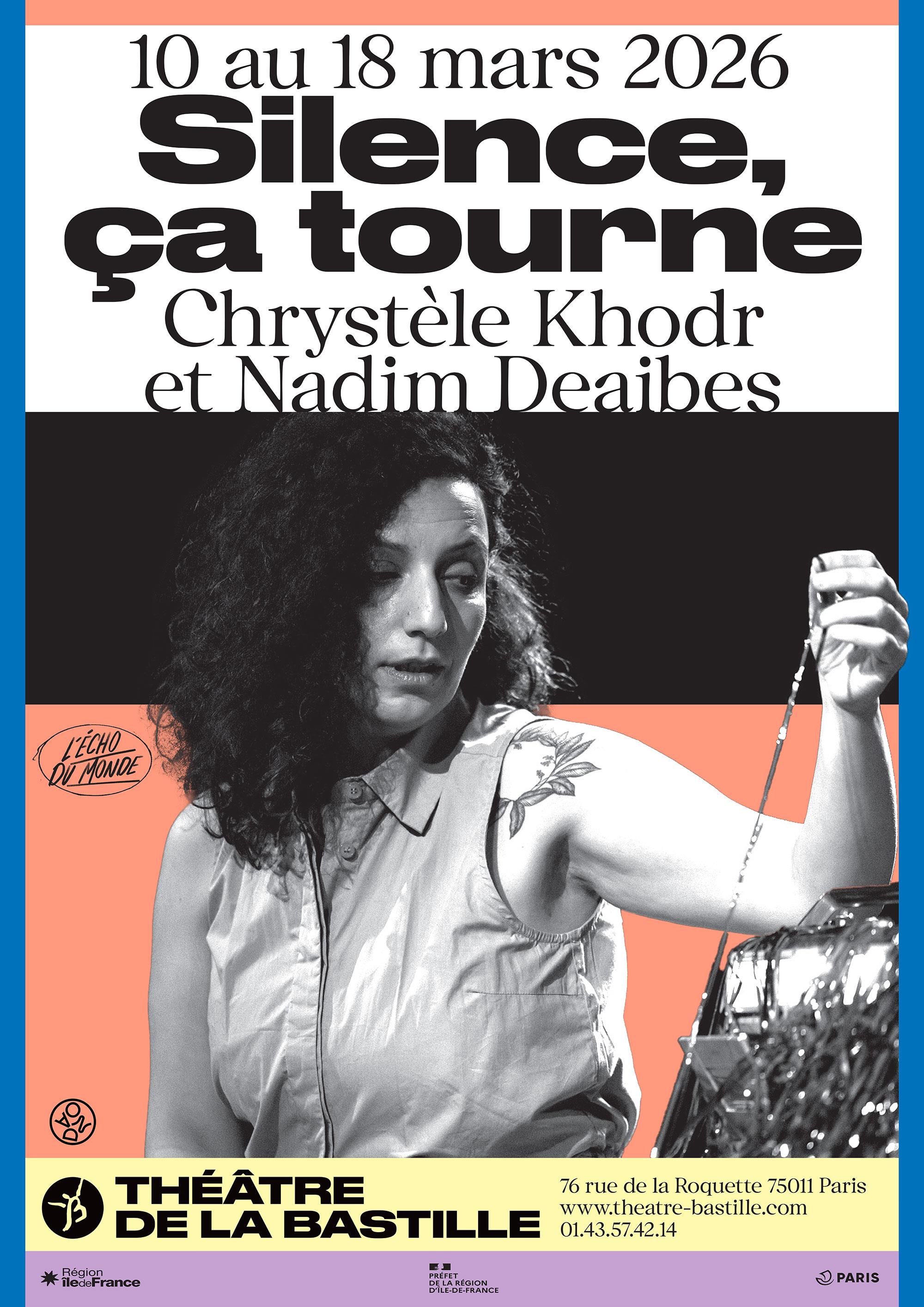 Dans Silence, ça tourne, Chrystèle Khodr poursuit son travail de mémoire collective autour du Liban, en retraçant la tragédie du camp de réfugié·es palestinien·nes de Tel al-Zaatar, dont les habitant·es furent assiégé·es et massacré·es en 1976 par les milices de la droite chrétienne. Spectacle en arabe, surtitré en français.