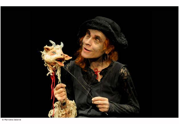Il est impossible d’oublier un spectacle d’Ilka Schönbein. De peu de choses elle fait tout un monde étrangement surprenant. Ses masques de papier mâché, fascinants prolongements de son corps, nous troublent de vérité. Le conte des frères Grimm Le loup et les sept chevreaux est ici prétexte à convoquer, avec chants yiddish, musique klezmer et jeux de masque, l’Histoire à ses heures les plus sombres.