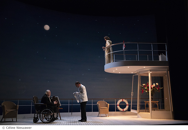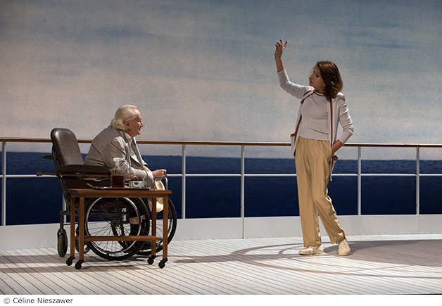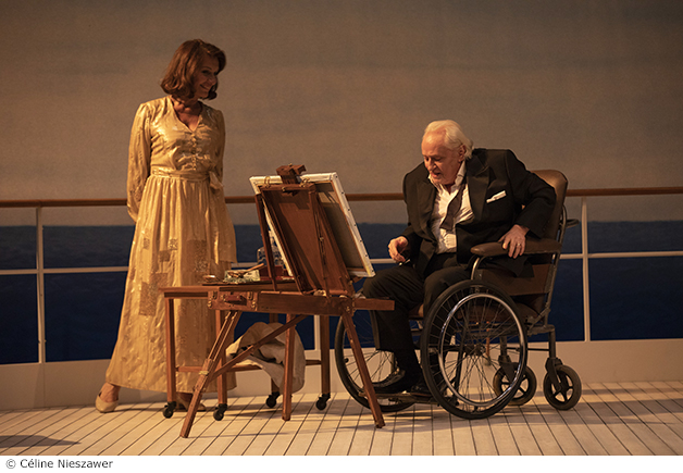 La pièce commence sur le pont du Christina, le yacht d’Onassis, qui s’apprête à appareiller pour une croisière en méditerranée. La rencontre entre Churchill et Greta Carbo est bien décrite mais ça manque de rythme et de rebondissement voire de musique, la présence de la Calas sur le bateau aurait pu en être le prétexte. C’est l’histoire de la rencontre d’un Premier Ministre impotent dans un fauteuil roulant à l’automne de sa vie et d’une actrice qu’il admire tant à l’aube de sa carrière. Il ne voit en elle que la star alors qu’elle aurait aimé qu’il vit la femme. Malgré le jeu des talentueux Niels Arestrup et de Ludmila Mikael, qui incarnent parfaitement leurs personnages, on reste sur notre faim comme Skorpios au loin !
