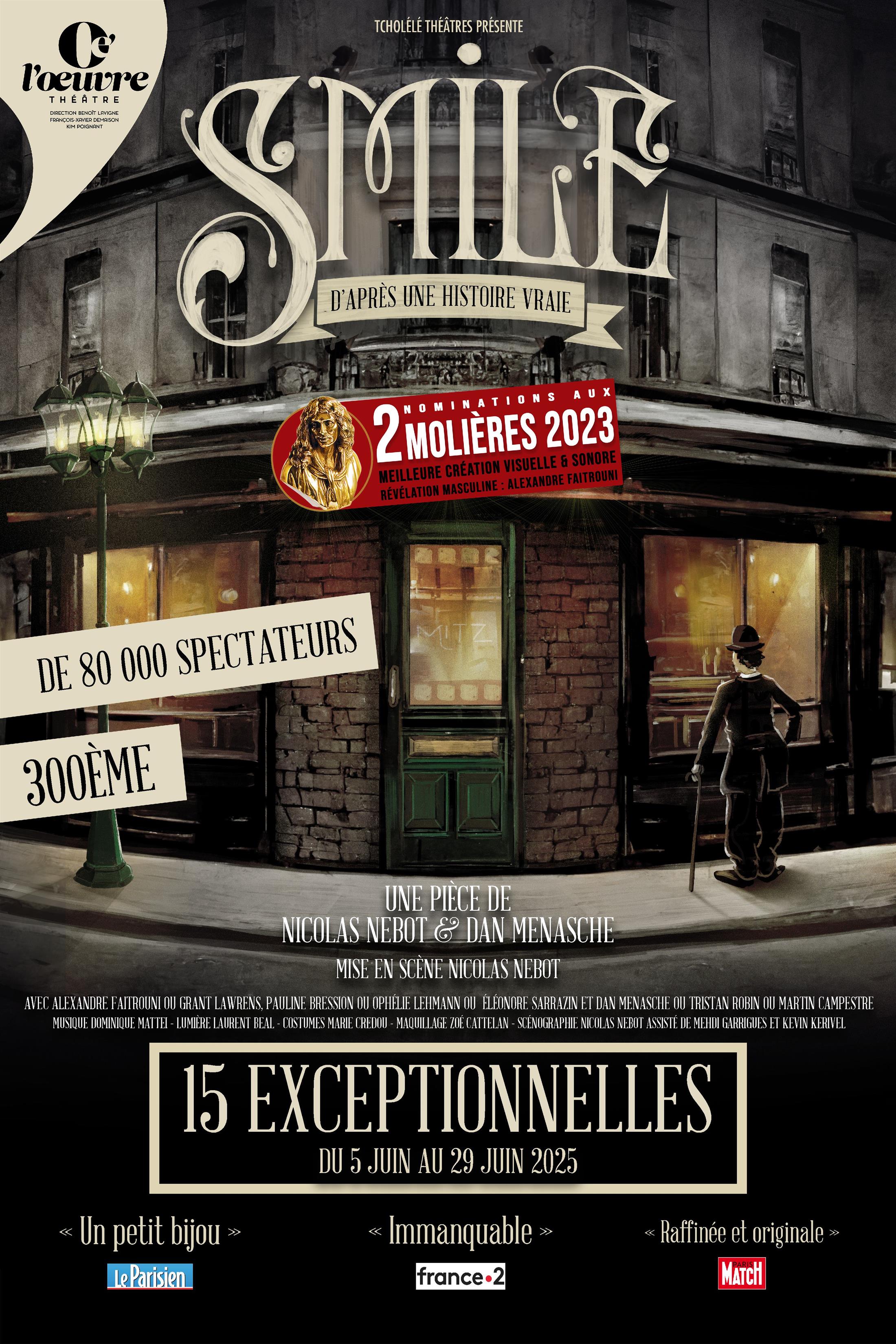 Après 300 représentations et plus de 80 000 spectateurs, Smile revient au Théâtre de l’Œuvre pour la troisième saison consécutive.