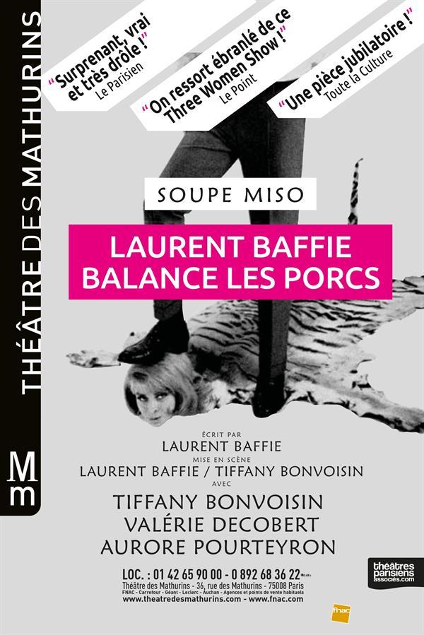 Vous souhaitez découvrir le monde merveilleux de la misogynie ? Ça tombe bien Laurent Baffie a décidé de balancer tous les porcs ! Tous ! Aidé par un trio de filles irrésistiblement drôles, personne ne sera épargné ! Vous pensez qu’il est impossible de rire avec un tel sujet ? Détrompez-vous, Soupe miso va vous instruire et vous dépouiller de rire ! À partir de 16 ans.