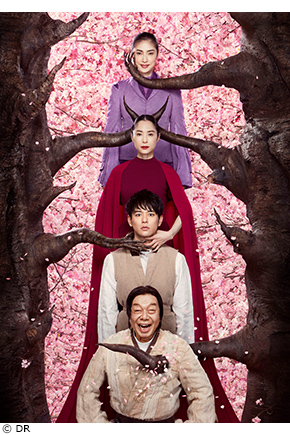 Les cerisiers en fleurs offrent un décor enchanteur à cette mise en scène magistrale mobilisant une trentaine d’acteurs de la troupe.
