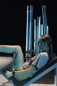 Dans un décor de salle de sport, avec tous les équipements nécessaires à la musculation, des musiciens interprètent à la lettre la partition écrite pour instruments inédits. Spectacle en lituanien, surtitré en français.