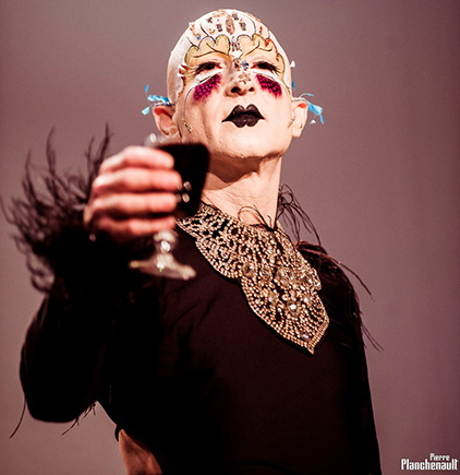 Steven Cohen, Sud-Africain, blanc, juif, gay, drag-queen interroge ses performances filmées. Avec un coq au Trocadéro, dans un township en destruction, dans un concours canin à Johannesburg… Les mots, les vidéos et la tenue drag-queen diffèrent à chaque représentation.