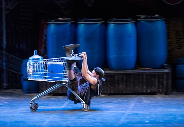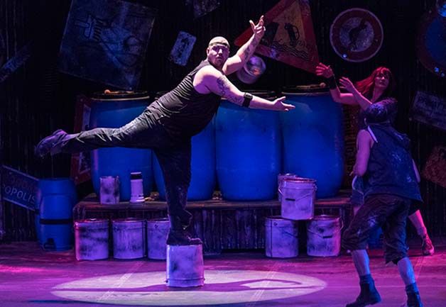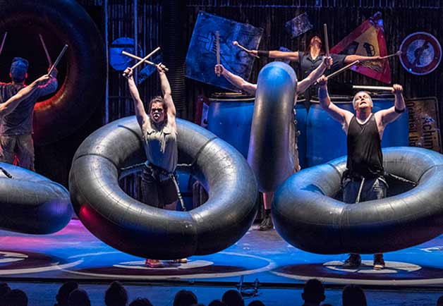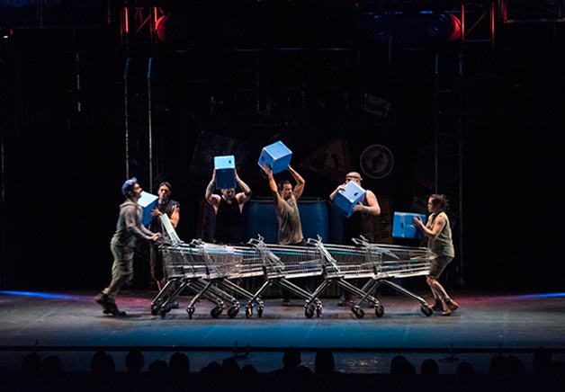 Savant mélange explosif de percussions, théâtre gestuel et comique visuel, les danseurs imposent sur scène une cadence effrénée avec les objets banals du quotidien, laissant le public bouche bée.