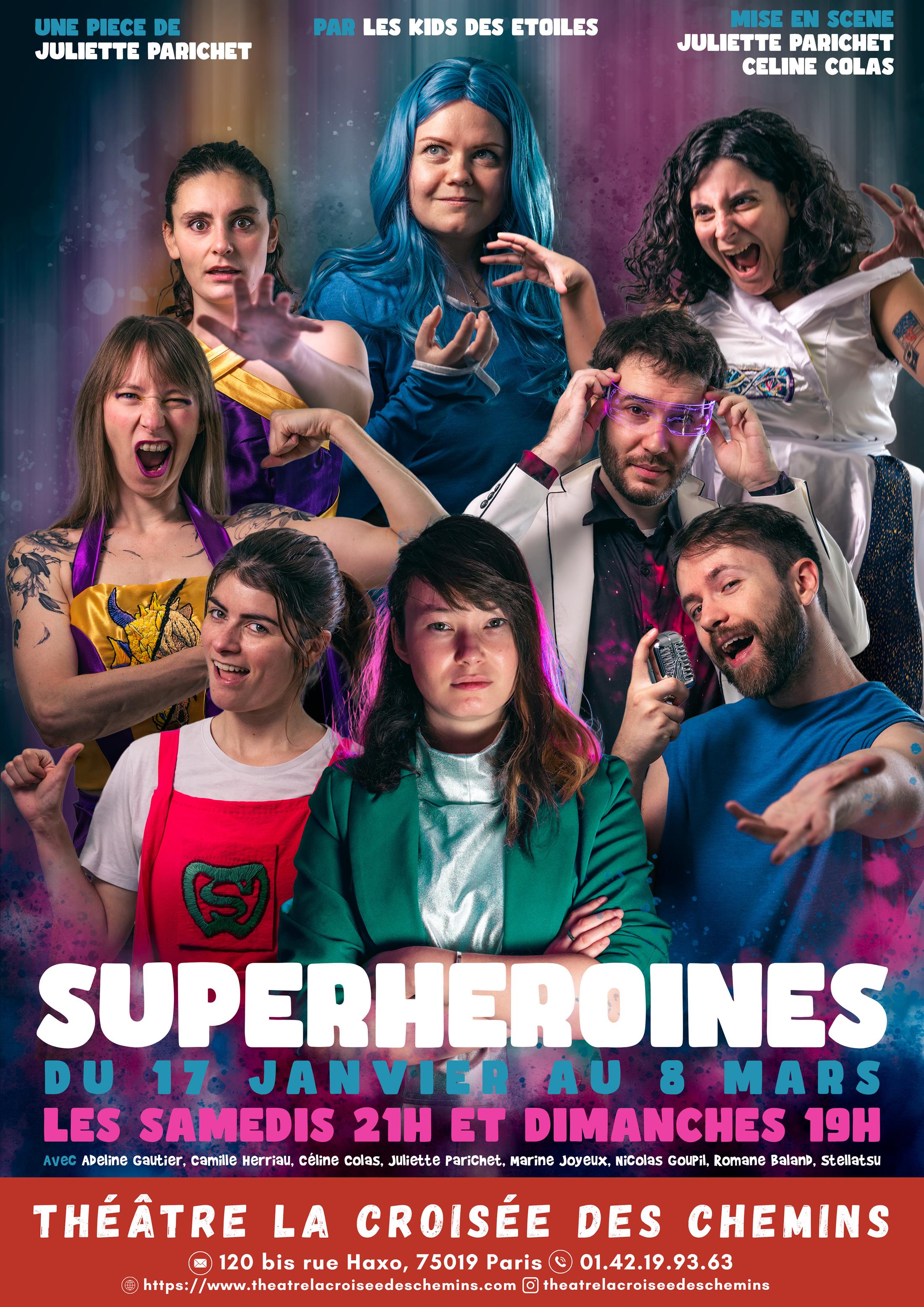 Elles ont des superpouvoirs. Et pas genre l'empathie ou l'instinct maternel, non. Des trucs comme prédire l'avenir ou arrêter le temps. Elles ont aussi de l'empathie, ceci dit. Et c'est pas facile de combattre des superméchantes quand on pense à la tristesse que va ressentir leur famille quand on les aura vaincues. Heureusement, il y a les séances de psy pour évacuer tout ça, et les frites pour retrouver la pêche. Et pour vous, il y a ce spectacle. Venez rigoler et écrire avec nous leur histoire.