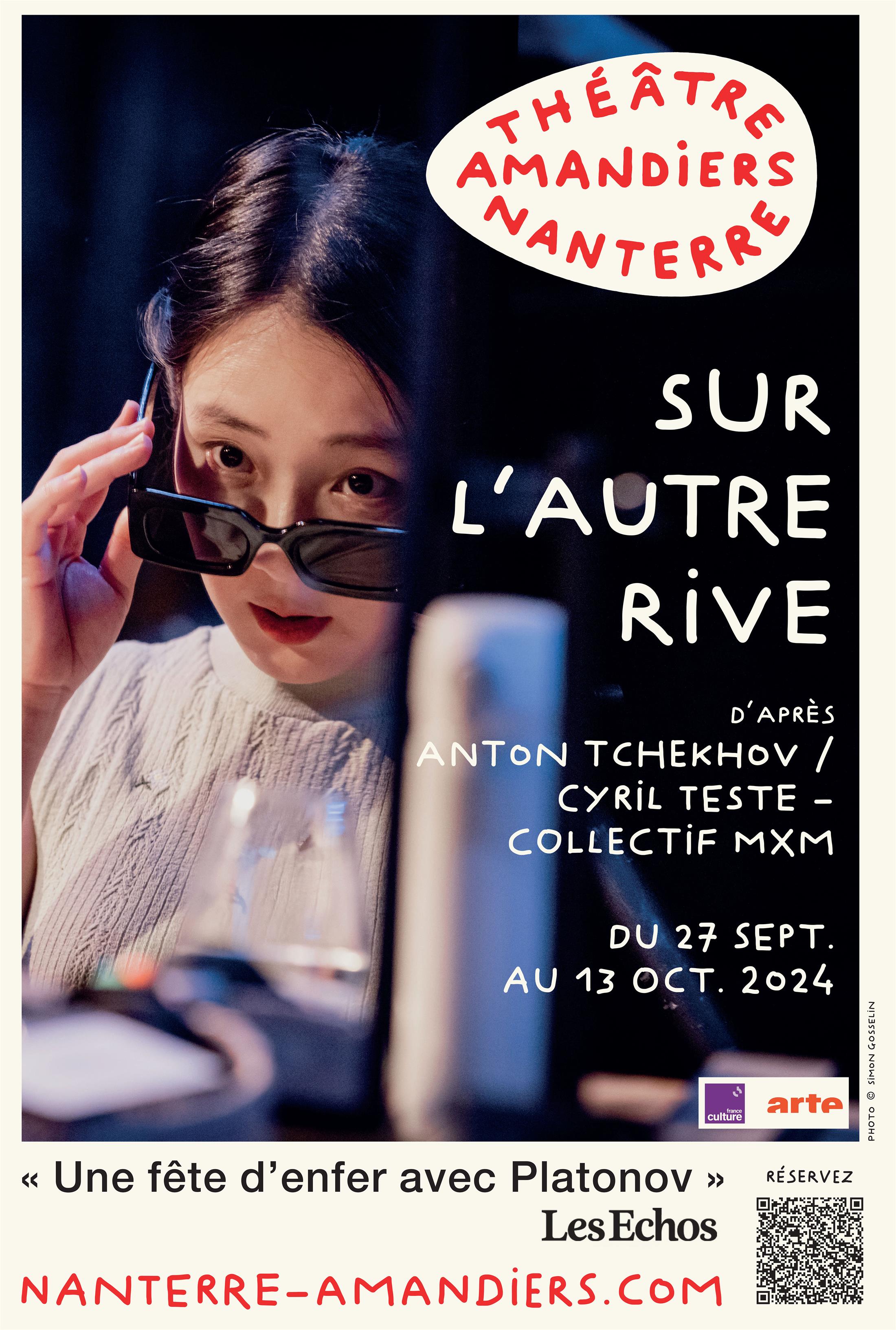 Avec Sur l’autre rive, Teste imagine que cette soirée, c’est celle donnée par Anna Pretrovna dans Platonov, pièce de jeunesse de Tchekhov, qui voit la mort des idéaux et l’échec flamboyant d’une génération. Son anti-héros, Platonov/Micha provoque, scandalise et fuit son malaise dans les amours et l’alcool. Autour de lui, une société petite-bourgeoise danse, se querelle et se confronte au vide.