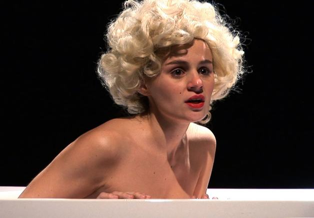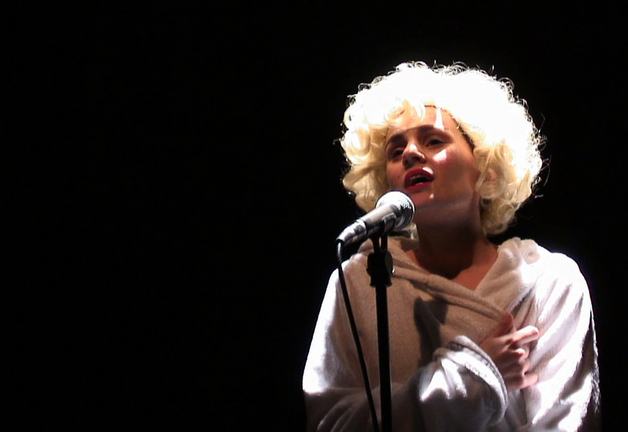 En marchant dans les pas de Marilyn Monroe, l’actrice interroge sa propre identité face au monde, afin de provoquer la même interrogation dans le public. Pour cela, j’ai choisi un ressort frontal dans l’écriture ainsi que dans le travail au plateau.