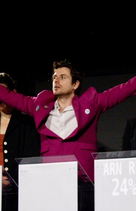 Sur un rythme frénétique, Surprise parti s’amuse des règles rhétoriques politiciennes en mêlant vraies imageries de meeting politique et codes du stand-up, le tout dans un univers rock déjanté. Suspense de l’infiltration du pouvoir, alliances, trahisons : la délicieuse bande d’anars mène la danse d’une saga tourbillonnante avec une jubilation absolument contagieuse. Mais une fois élu, que fait-on ?