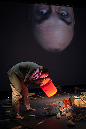 Le travail scénographique extrêmement élaboré est toujours dirigé par le souci d’enrichir la création théâtrale. Les images produites interagissent avec le corps du comédien. Le théâtre des débuts de la compagnie, fait d’ombres et de lumières, met désormais en miroir deux époques et deux manières de raconter. Telle est la gageure de ce nouveau spectacle.