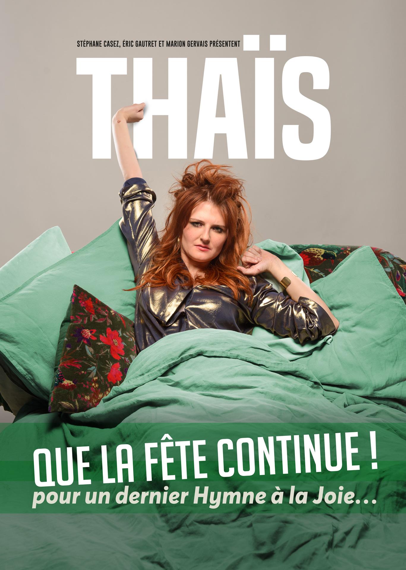 Apres une tournée dans toute la France et un triomphe à la Cigale, Thaïs joue en direct à la TV au Theatre du Gymnase à Paris, son spectacle : Que la fête continue ! À cette occasion, elle offre au Public Parisien, une représentation inédite.