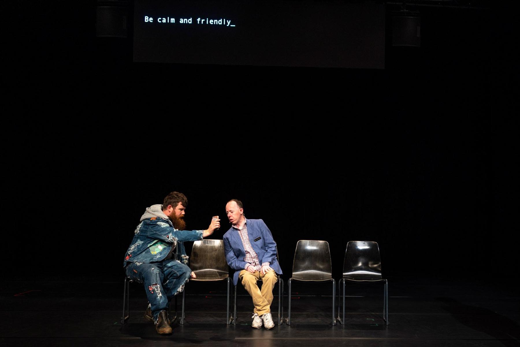 L'intelligence artificielle de demain nous rendra-t-elle tout·e·s déficient·e·s intellectuel·le·s ? Politique et philosophique, la question est d’autant plus mordante et pertinente qu’elle est soulevée par des interprètes porteureuses de handicap(s). Défiant la soi-disant « normalité », les trois artistes de cette compagnie australienne, également co-créateurices du spectacle, lancent au plateau une vraie-fausse réunion publique. À l’ordre du jour : les droits humains, l’impact social de l’intelligence artificielle, la surproduction alimentaire. Quel visage donne-t-on à la démocratie ? De malentendus en erreurs accumulées, l’humour noir se glisse dans cette critique de l’humanité. Nous voici invité·e·s à réfléchir, sans compromis, à la responsabilité individuelle et collective de notre société. Une conversation fraîche et urgente, sur un futur incontrôlable.