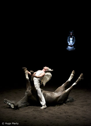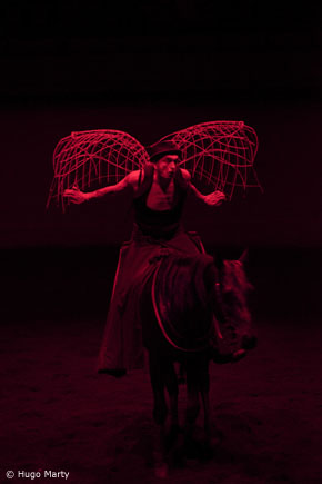Dans un espace unique, on songe au fond d’un volcan - Bartabas revient sur scène et nous livre une fascinante rêverie équestre et poétique. Pour cette nouvelle création, il redescend dans l’arène tel un archange déchu depuis son purgatoire.