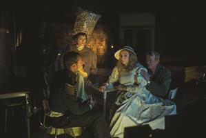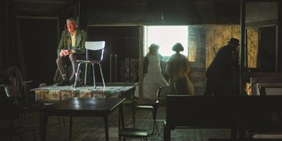 Quand on vient assister à un spectacle du Radeau sous la tente, on ne soupçonne pas que derrière les fourrés, les arbres et les bosquets, un sentier mène jusqu’à cette clairière où trône une table familiale, agrémentée de deux bancs et deux ou trois chaises. Autour de la table en bois délavé par les intempéries, prend place l’équipe restreinte du nouveau spectacle autour de François Tanguy : Frode Bjørnstad, Laurence Chable, Erik Gerken, Vincent Joly (jeu) et Eric Goudard (son). C’est un temps de lecture. Non celle d’une pièce nouvelle ou ancienne - ce n’est pas dans les habitudes du Radeau de monter des pièces dans leur entièreté. Cependant, les spectacles sont souvent traversés de bouffées de textes arrachées à des pièces, des romans, des essais d’hier et d’aujourd’hui. C’est un temps de « constructions parallèles » dit François Tanguy, maître d’œuvre et metteur en scène des spectacles du Radeau.