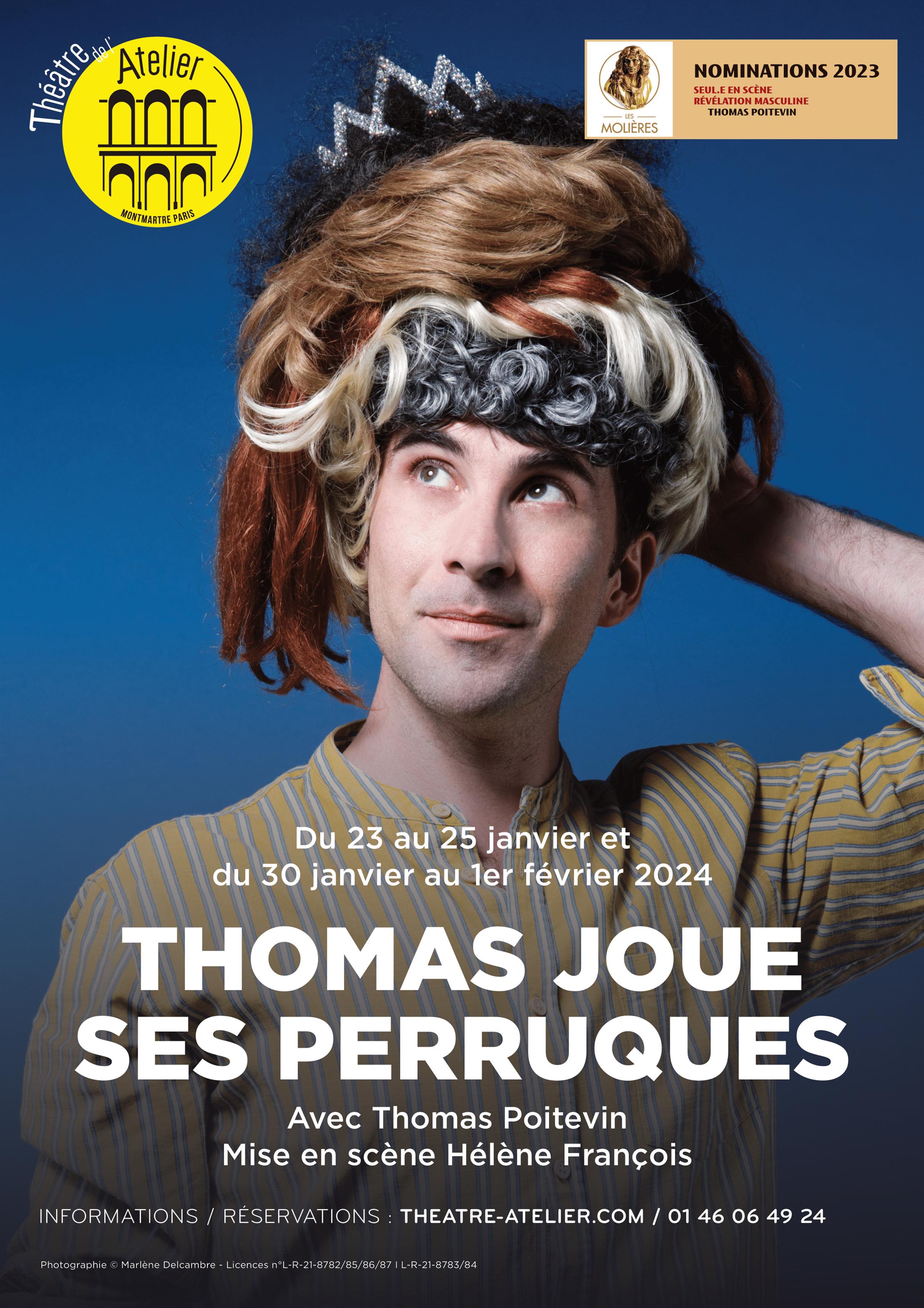 Un spectacle hautement réjouissant, écrit et interprété par le brillant Thomas Poitevin qui déploie grâce à des perruques une galerie de portraits tragiques et tendres. On rit de tous ces personnages qui prennent vie devant nous, c’est un spectacle attachant, touchant et irrésistiblement drôle. Un seul en scène à ne manquer sous aucun prétexte.