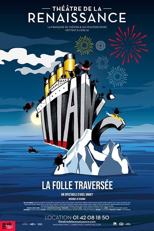 Une comédie délirante, loufoque et musicale avec le bateau qui coule quand même à la fin... Les Moutons Noirs revisitent l’histoire du Titanic dans un voyage immersif et musical. Embarquez à bord du célèbre vaisseau des rêves et plongez à bord d’une odyssée élégante et déjantée où s’entremêlent les intrigues et les personnages, les lieux et les coursives. Une comédie chic et délirante dont vous ne sortirez pas indemnes !