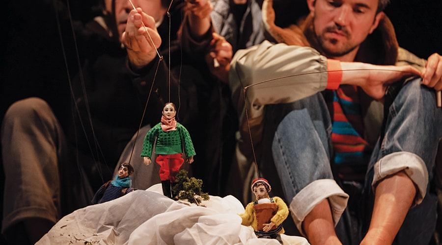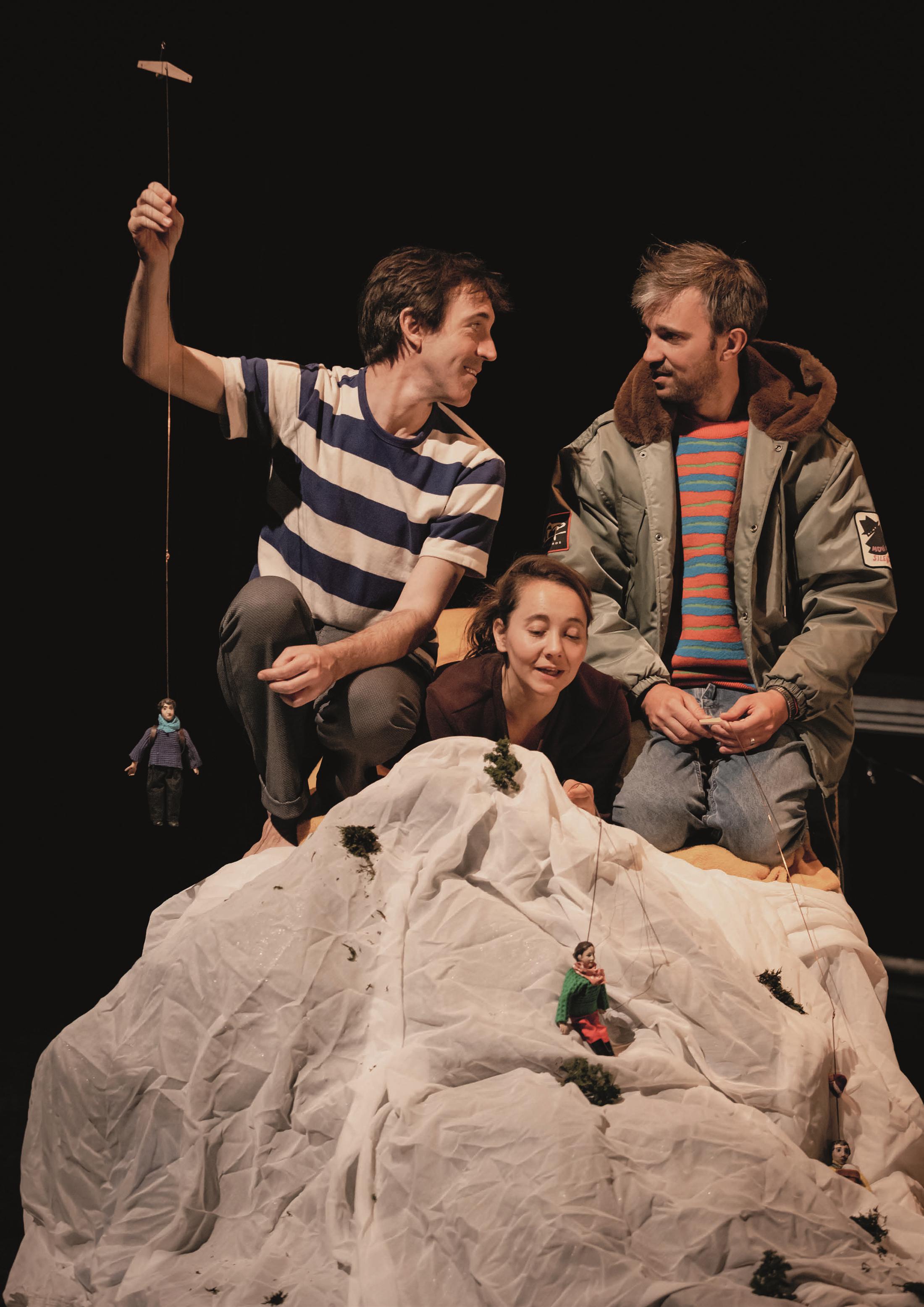 Sept comédiens-marionnettistes et des poupées de différentes tailles nous emmènent dans un univers trépidant plein de surprises. Les époques et les espaces communiquent, les personnages s’y dédoublent. Le texte est signé du dramaturge Mike Kenny, originaire du Pays de Galles. Le metteur en scène Simon Delattre lui a passé commande d’un texte original pour la seconde fois. Après L’Éloge des araignées qui s’inspirait de la vie de la sculptrice Louise Bourgeois, Mike Kenny imagine une pièce à partir de la mythologie familiale de Simon Delattre. Tout le monde est là prend la forme d’une quête initiatique folle vers une découverte : les histoires dont nous héritons façonnent nos identités autant que nos gènes, et peut-être davantage.