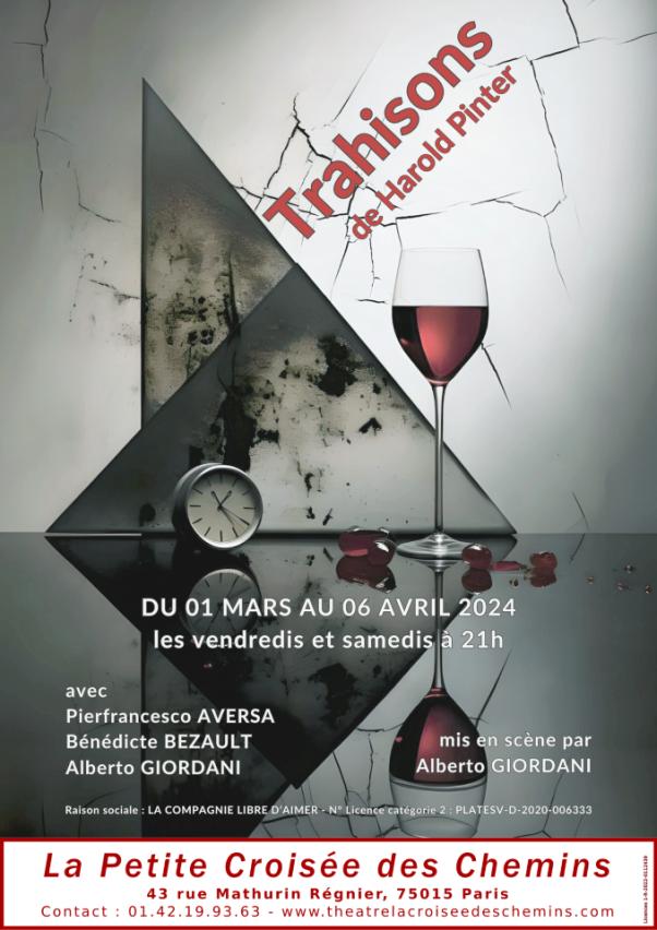 Parmi les dramaturgies les plus connues de Harold Pinter (Prix Nobel de Littérature en 2005), Trahisons met à nu l’hypocrisie et la superficialité de ses trois protagonistes. Un éditeur, une galeriste et un agent littéraire, représentants de la haute bourgeoisie londonienne, dont le niveau intellectuel et d’éducation est tel que chaque personnage dissimule ses vrais sentiments et ses intentions derrière bon ton et convenances.