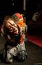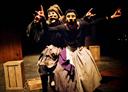 La bohème, d’abord. La bohème, pleine de ses personnages effrayants et mystérieux, de leurs couleurs et de leur monde intriguant. Mais une bohème propre à l’imaginaire du metteur-enscène et des comédiens, avec leur musique aux accents tziganes, un air de liberté qui n’existe que le temps d’une représentation, le temps d’une danse avec le public. Dès le début du spectacle, le public est immergé dans un univers intemporel rappelant pour certains les camps des gens du voyage, pour d’autres les caravanes de comédiens ambulants ou le feu de camp de gens dormant à la belle étoile.