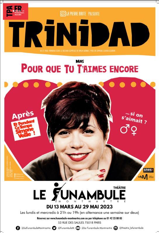Après des années de chroniques radio, le succès de Et pendant ce temps Simone veille, Trinidad raconte, chante, danse et bouscule joyeusement les prêt-à-penser d’hier et d’aujourd’hui, en toute liberté.