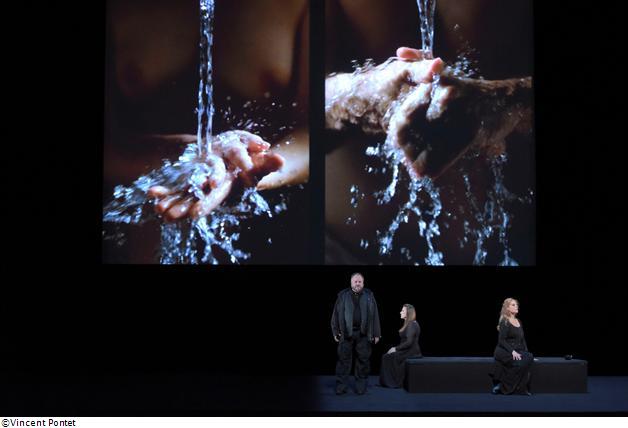 Détachées du plateau, suspendues tels des retables, les vidéos de Bill Viola exposent la quête initiatique des amants pour atteindre le nirvana. L’association de ces deux artistes majeurs donne vie à un objet artistique unique et total.