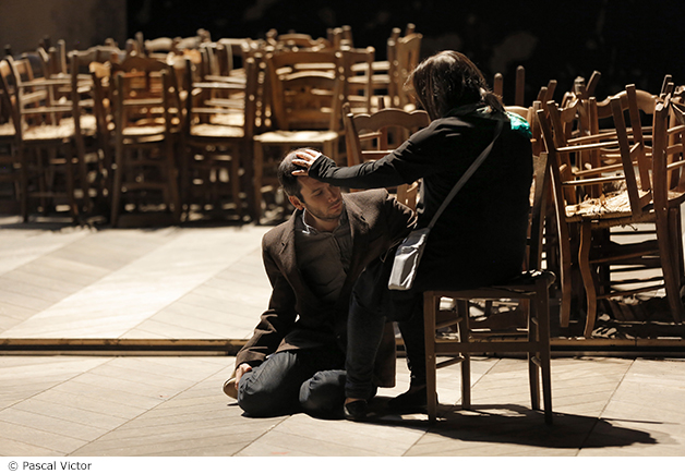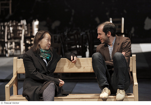 Le duo entre Hélène Patarot, complice de Peter Brook, et Camille de La Guillonnière, acteur fétiche de Jean Bellorini, recèle de belles promesses. La délicatesse et la profondeur de leur jeu ne se départissent jamais d’humour. Macha Makeïeff les entoure d’objets et de meubles, égrenés comme des étoiles dont la lumière guide dans l’obscurité.