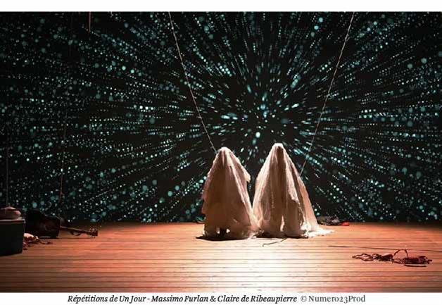 Un jour est plutôt une proposition autour de la mort que sur la mort, mais avant tout elle parle des morts. Ce qui nous intéresse c’est ce que font les morts, où ils sont et comment ils communiquent avec les vivants. Cette question des morts, nous y avions réfléchi dans nos travaux respectifs il y a longtemps, Massimo dans son travail de peinture et dessin et moi dans une thèse de doctorat qui portait sur les morts et les fantômes dans les textes de Claude Simon et de Georges Perec. Et ce projet est né lors d’une rencontre avec Jane Birkin, d’une série de discussions autour des disparus, et de leurs fantômes. Des relations que nous continuons de construire avec eux. Elle a commencé ce travail avec nous mais n’a pas pu le poursuivre suite à un deuil trop soudain et douloureux. Le projet a pris alors une dimension nouvelle, plus violente sans doute et plus sombre.