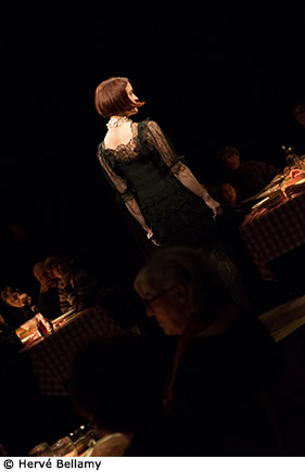 Un souper-spectacle organisé autour de huit tables disposées en étoile dans l'intimité d'un théâtre est un moment qui vous transporte en dehors du monde. La comédienne Corine Miret, au centre, sur une estrade ronde, accompagnée d'un violoncelliste qui donne du relief au récit, réussit à faire exploser en bouche le texte de M.F.K. Fisher et à lui donner toute sa saveur. Le spectateur se laisse alors emporter dans ce Dijon des années 30 dans un restaurant "aux trois faisans" dans lequel officie un serveur, Charles, qui va les initier, elle et son compagnon, aux plaisirs de la table et des bons vins. On se laisse porter et même souvent emporter par le texte magistralement interprété par la comédienne qui distille avec élégance, sensibilité et justesse toutes les émotions culinaires et personnelles que Fisher a voulu faire passer dans ses livres. Le menu proposé pendant le spectacle est exclusivement composé avec les légumes du potager expérimental du Château de La Roche-Guyon. Spectacle à voir absolument et de toute urgence avant le 21 février 2016.