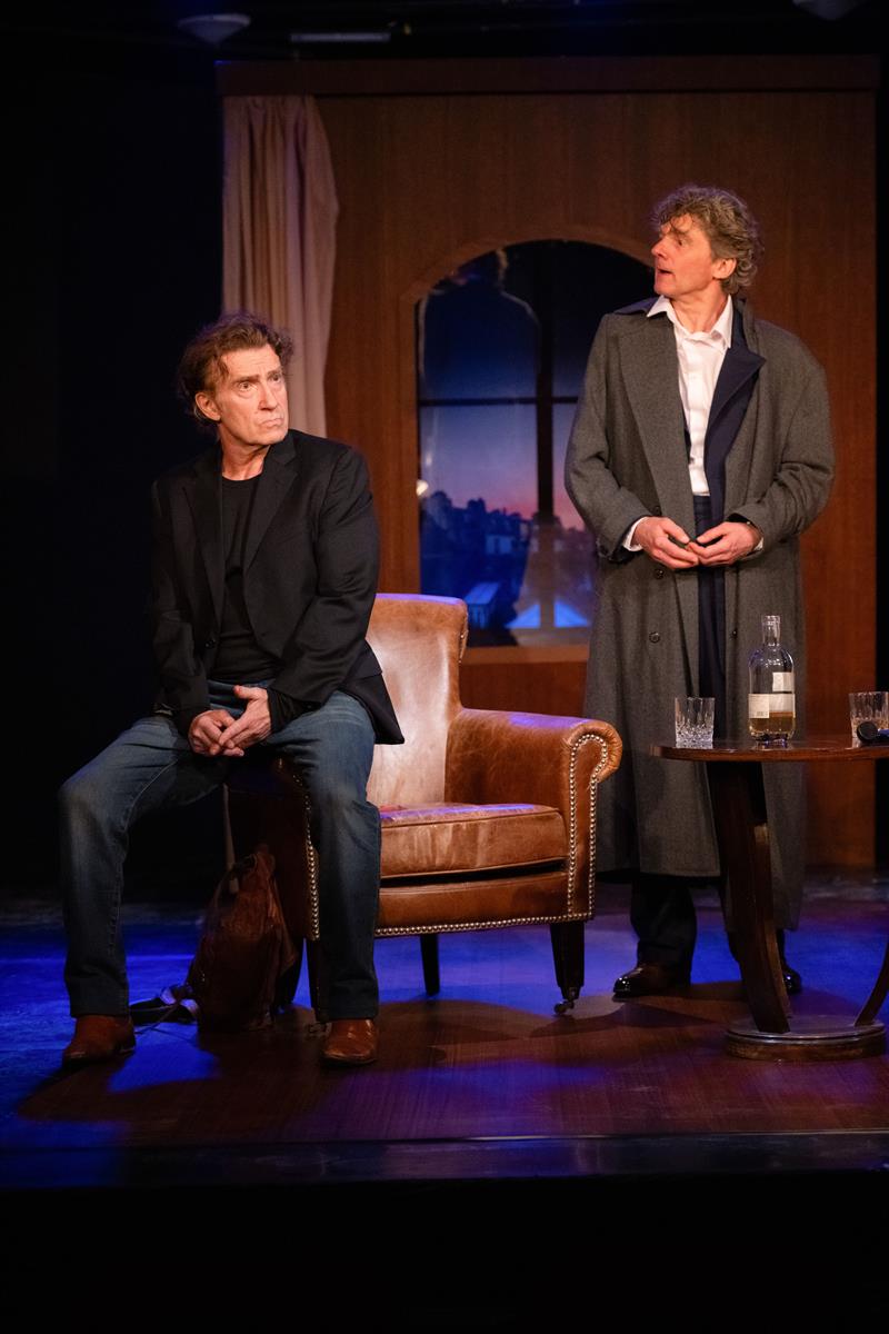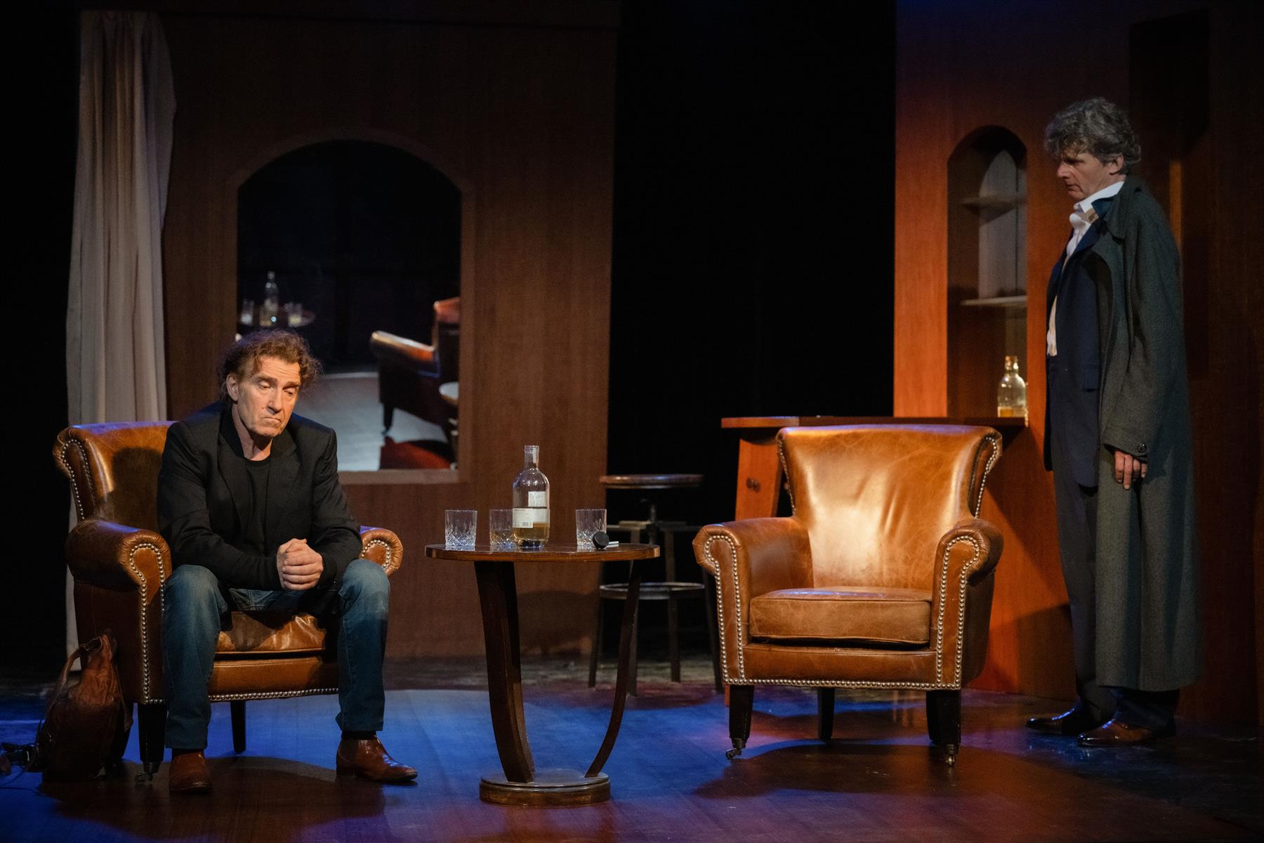 Thierry Frémont et Nicolas Vaude vont exceller à incarner des personnages aussi attachants que vibrants dans ce duo qui inclue le public avec suspens et volupté. Ils vont aussi être terribles comme on l’est quand on est amoureux fou et prêt à tout pour se sentir vivants et Humains avec ce grand H qui fait que l’on tremble au théâtre et que l’on s’accroche à son siège dans des découpes de bois, de cuir et de lumières très élégantes signées Catherine Bluwal et Stéphane Baquet. La joute verbale peut achever de côtoyer la confidence, et l’on se blottit au creux de leur histoire avec délice. Tout étonnés encore de se laisser prendre et surprendre à chaque instant.